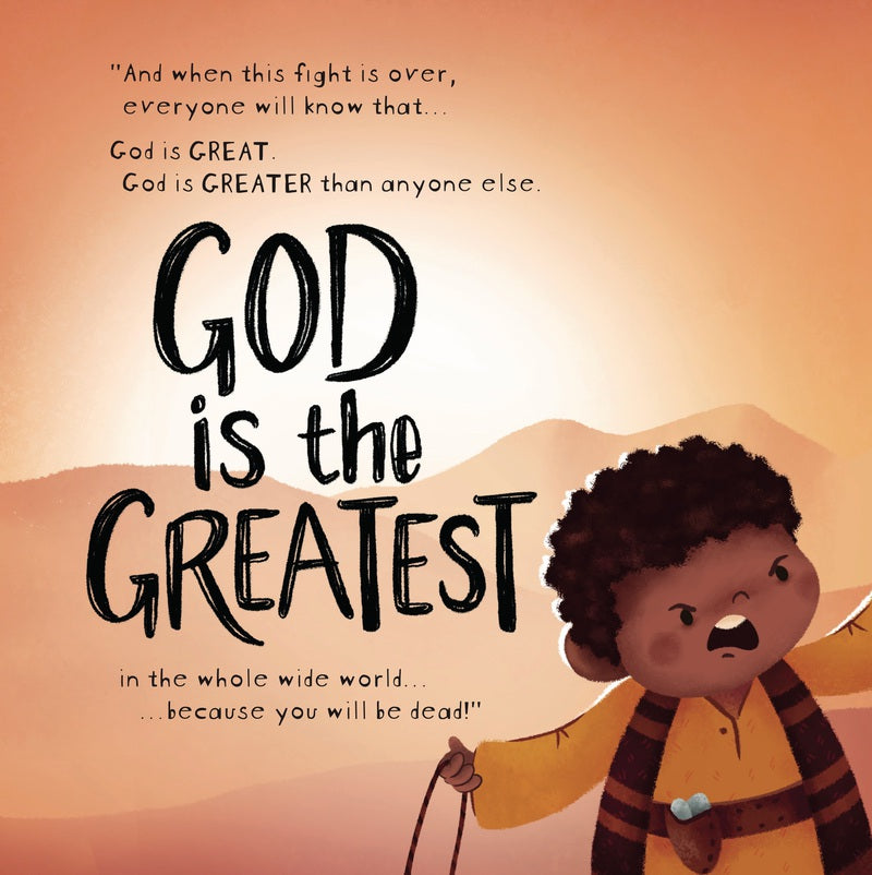 In this innovative and faithful retelling of a classic Bible story, children 2-4 years old will discover what happened when little David fought the biggest Giant, Goliath. Children will learn that God is greater than anyone else.
